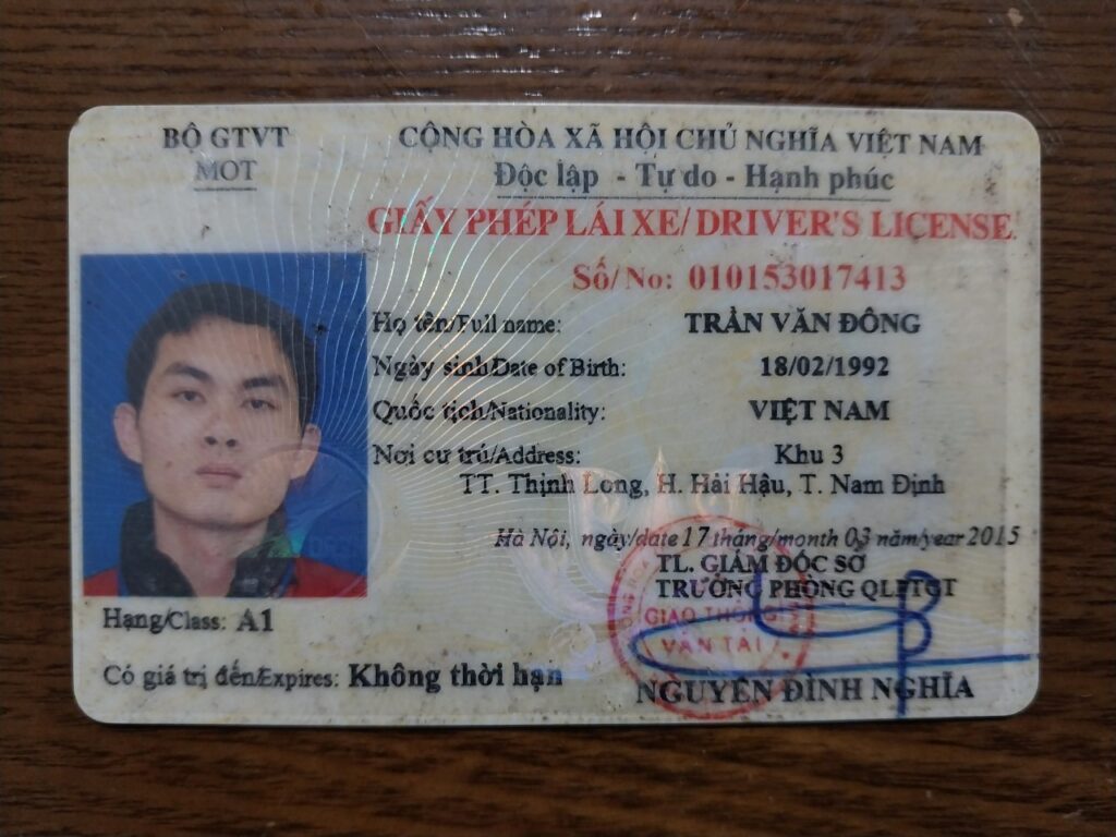 Giấy tờ đăng ký HỘ KINH DOANH TRẦN VĂN ĐÔNG